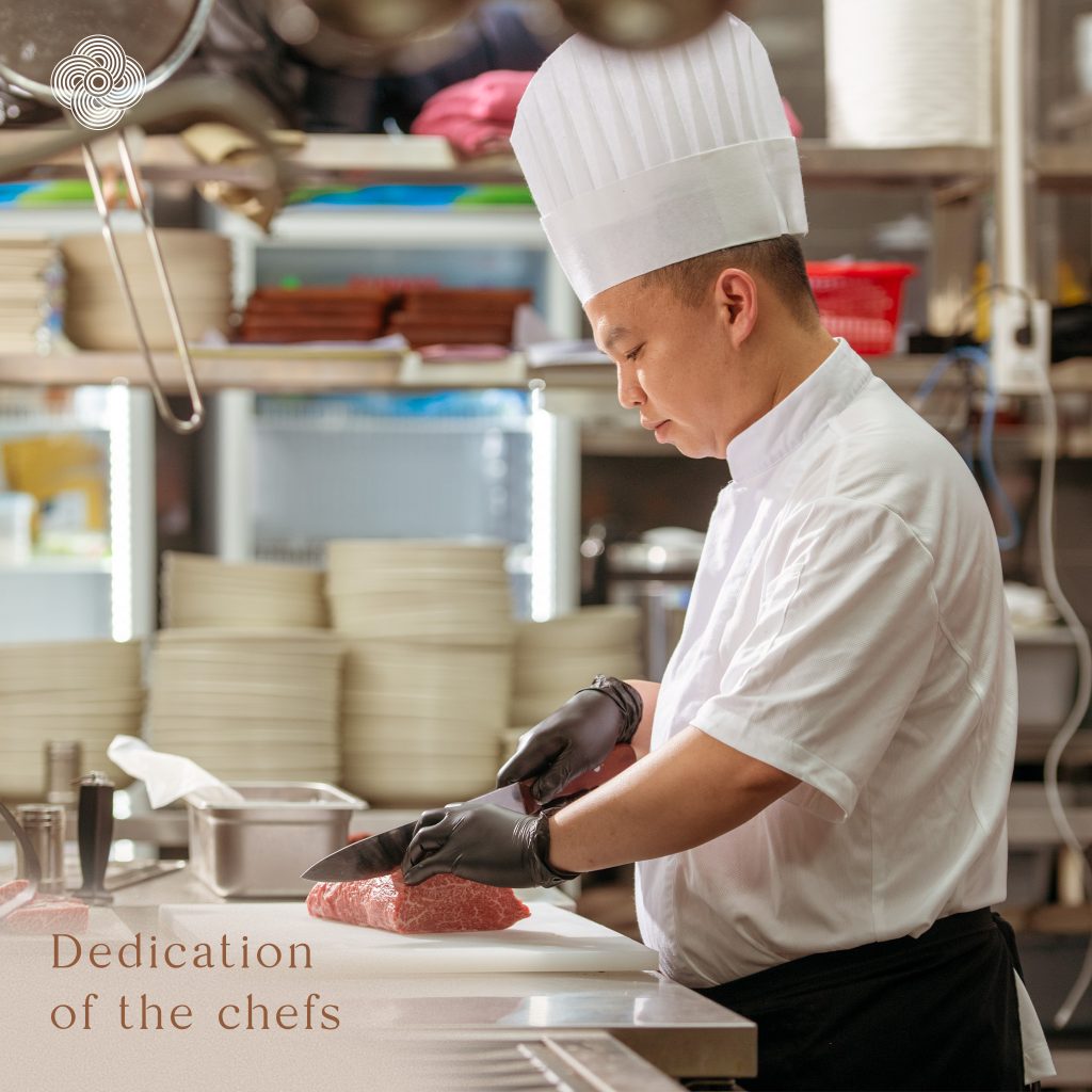 Thịt được chọn luôn là phần ngon nhất, tươi nhất, được thái thành những lát to và mỏng để đảm bảo độ chín đều khi nướng. Phần thịt này sẽ được các đầu bếp tẩm ướp theo bí quyết riêng với các loại gia vị vừa đậm đà vừa thơm hấp dẫn. Những miếng thịt nướng thơm ngon, giòn tươi mát của các loại rau và những loại nước xốt sẽ làm thành những món ăn rất ngon miệng.